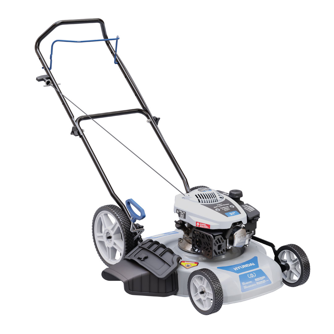 This compact and efficient Hyundai 2-in1 gas-powered lawn mower makes yard maintenance a breeze. A powerful 173cc engine with auto choke cuts in one pass all summer long.
