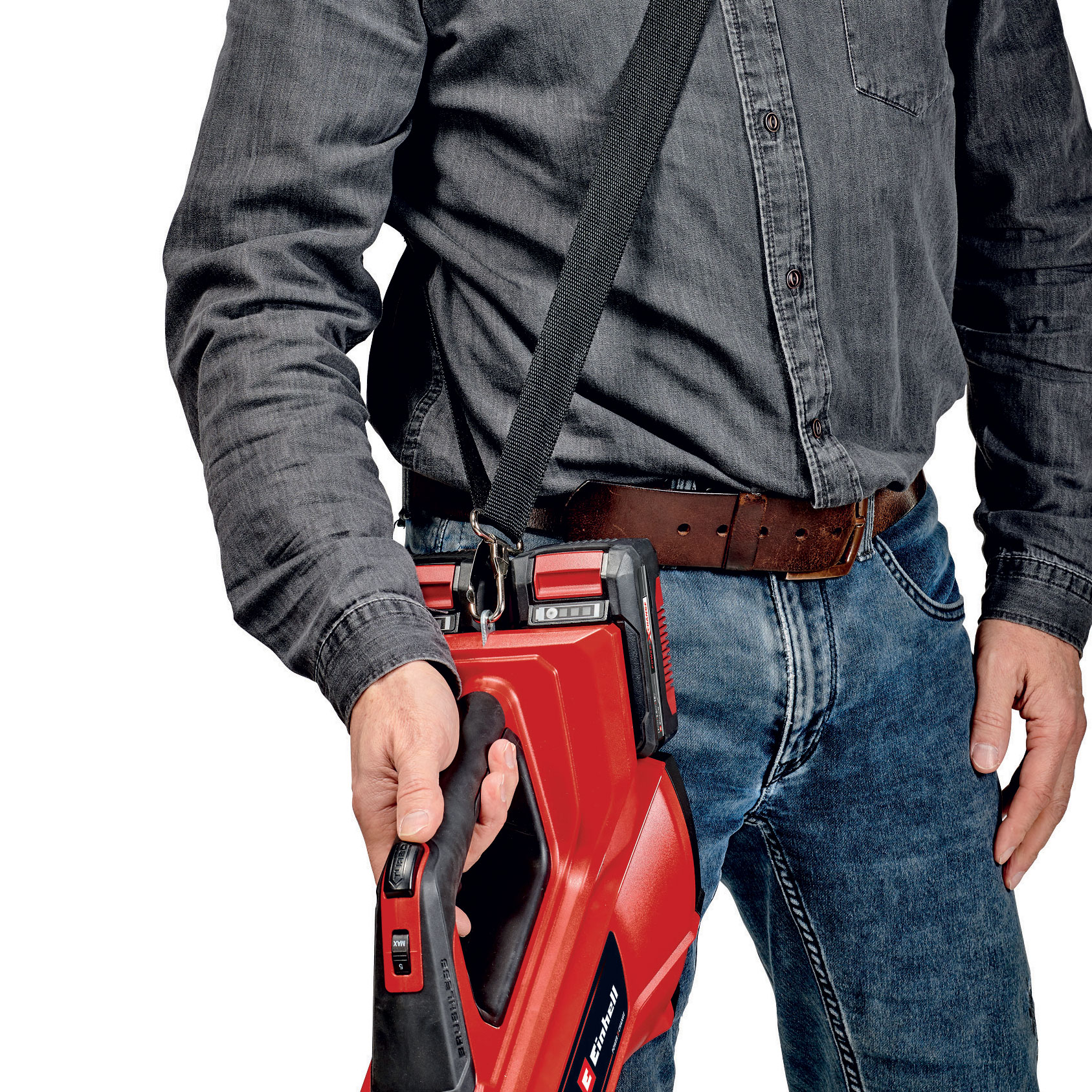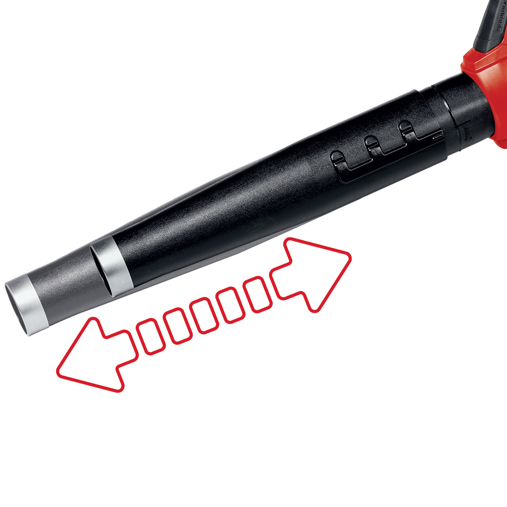 The Einhell 480 CFM cordless leaf blower 3433617 (GP-LB 36/210 Li E BL-Solo) is a powerful leaf blower which can be used anywhere outside the home and in the garden without restriction. The device is powered by the Einhell PurePOWER brushless motor. This brushless motor offers more power and a longer running time than conventional carbon brush motors. After registering online, the brushless motor comes with a 10-year warranty. Light and easy to handle, the leaf blower is also a reliable tool which enables a quick and convenient cleaning of open areas and niches. Thanks to the electronic speed control, the blowing power can be precisely set according to all requirements. For those areas where the cordless leaf blower tool is put to particularly intensive use, it has a turbo switch for maximum blowing power. Thanks to the balance handle with soft grip, the cordless leaf blower is both pleasant and secure to hold for particularly user-friendly operation. The length of the tube can be changed tool-free in 3 different positions. As a result the item can be adjusted perfectly to every body height. Additionally the tube end is protected from damage by a robust metal ring to extend its lifetime. Thanks to the detachable tube and the integrated wall holder the storage of the leaf blower is easy and space-saving. The included shoulder strap with shoulder pad makes it particularly comfortable to work with and takes the strain off the user. The tool does not include a battery or a charger. These accessories are available separately.