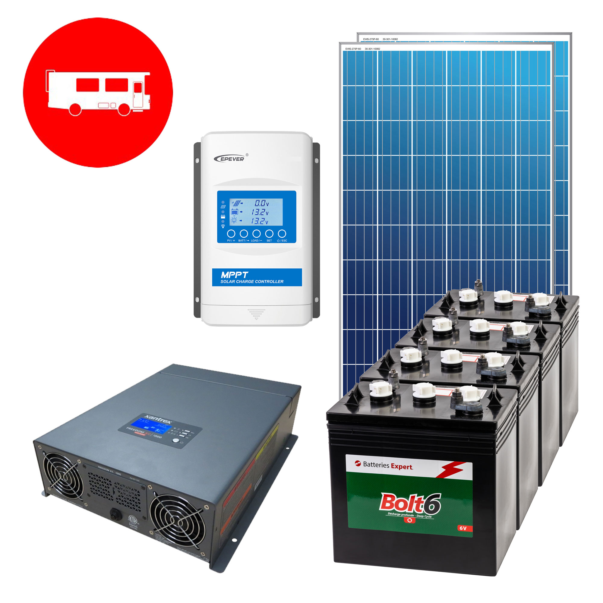 RV-ECO-1KWHJ-1 Complete "Economical" 12V Cottage Kit for 1000Wh/d Energy Usage 2 x 65" x 40"