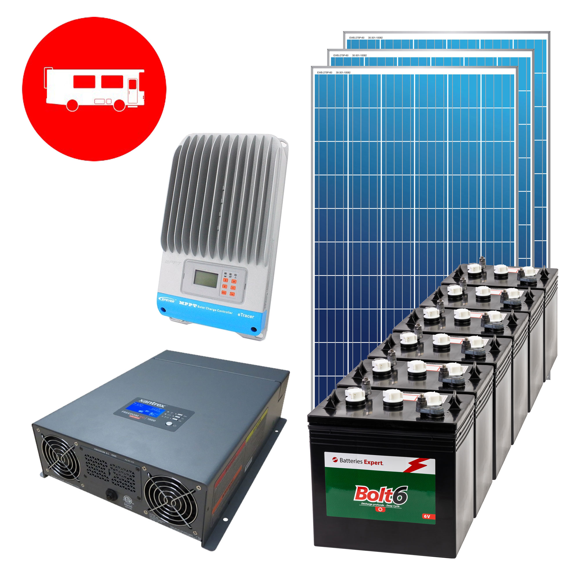 - This 12V kit can supply an average daily consumption of 1500Wh, with a reserve of 3700Wh at 50% discharge. - It can power 12V and 120V appliances up to 2000W. - The inverter/charger allows you to add a generator to recharge the batteries when needed, all without interruption. - The MPPT controller ensures the most efficient harvesting of solar energy. - Flooded batteries require regular maintenance to ensure optimum life. They also need to be vented to the outside to evacuate the hydrogen emitted during charging and discharging.