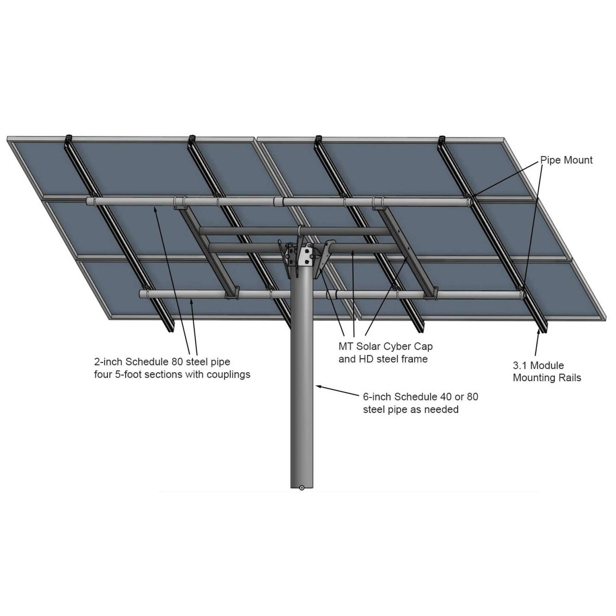 TTP-6HW Top Pole PV Mount for 6 x 60/72 Cells Panels (High Wind)