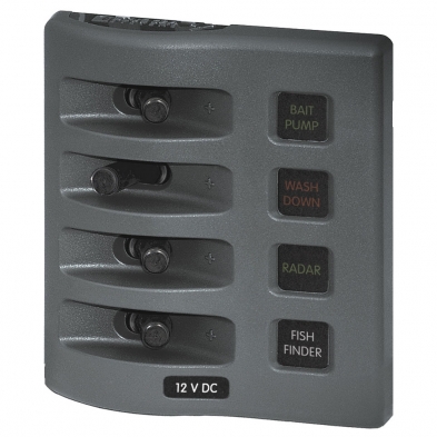 BS4304 WeatherDeck 12V DC Waterproof Switch Panel with Fuses - Gray 4 Positions