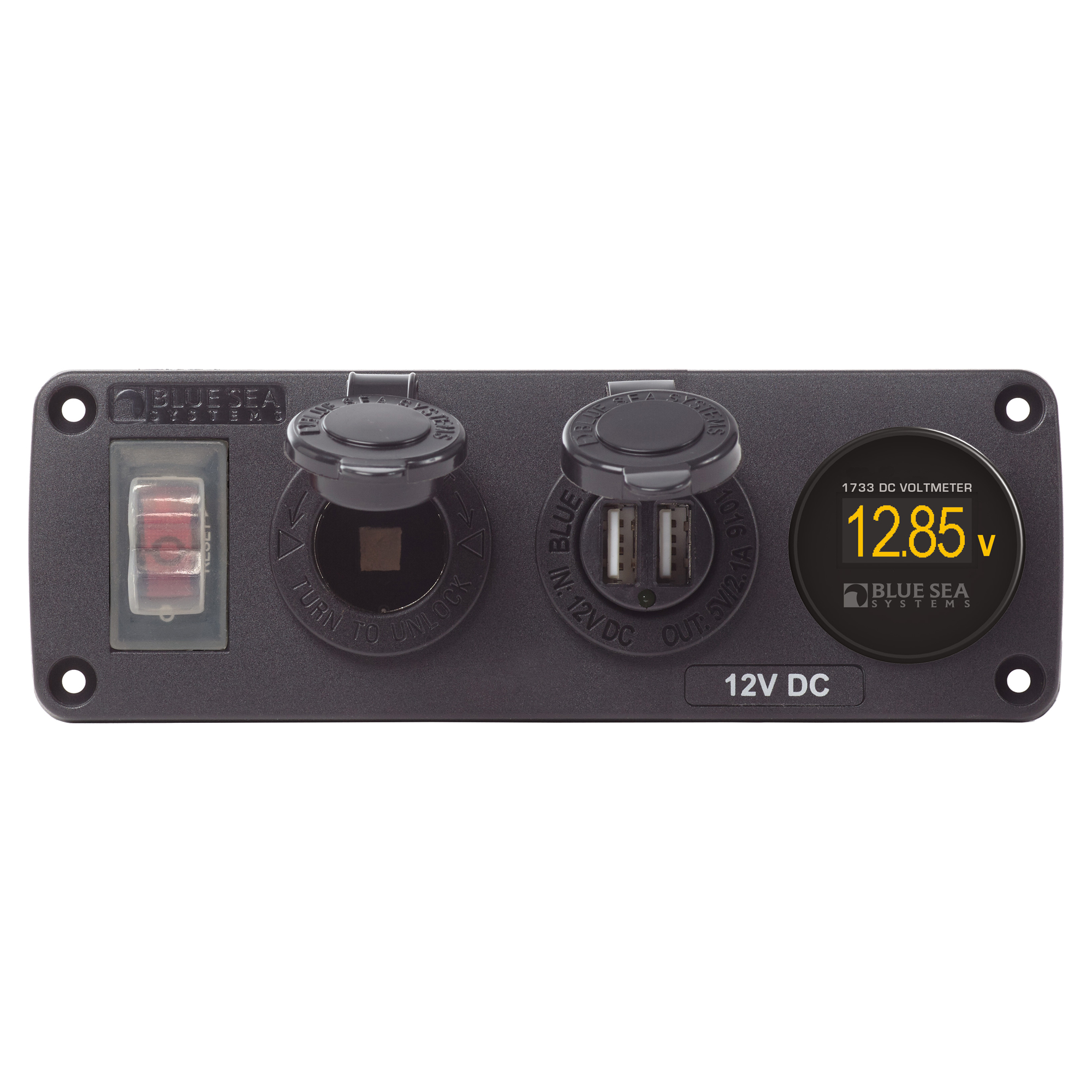 BS4366 Water-Resistant Accessory Panel - 15A Breaker, 12V Socket, 2x USB, Voltmeter