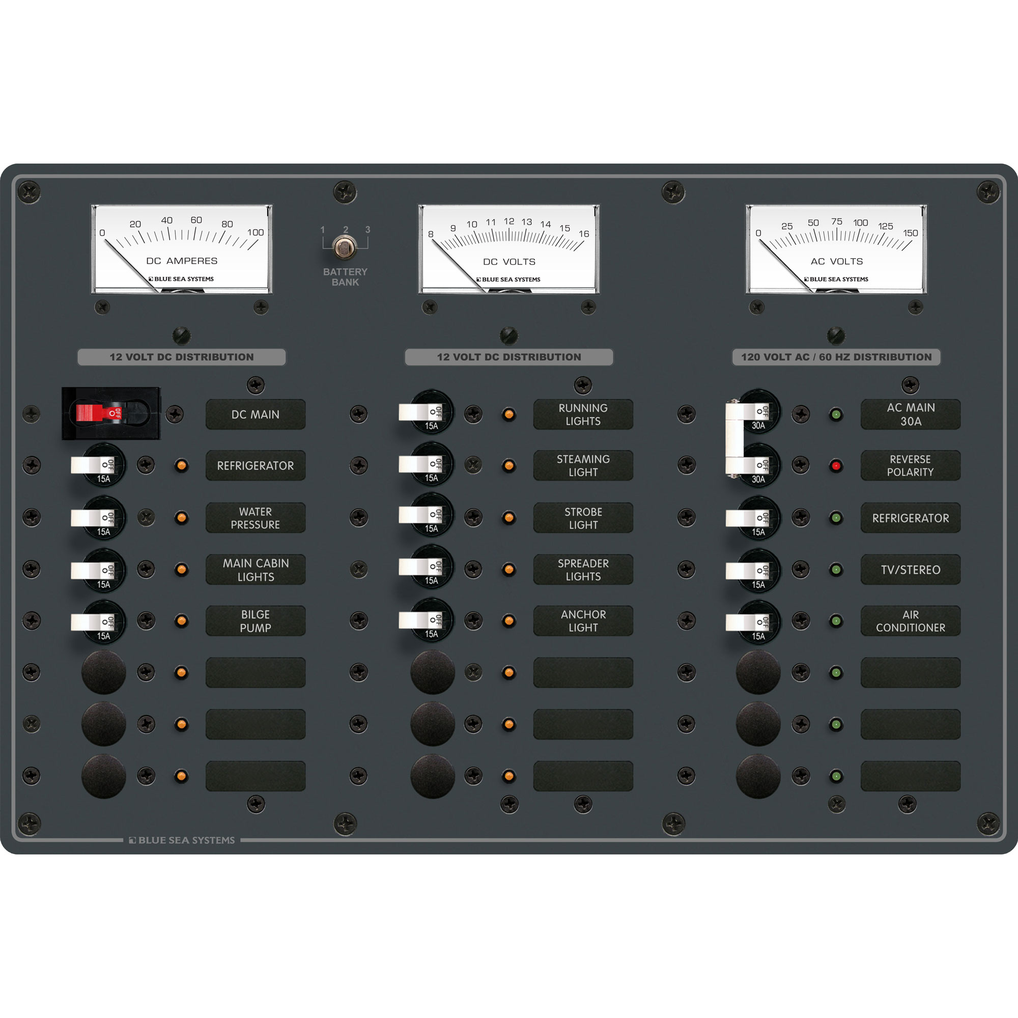 BS8084 Blue Sea Breaker Panel AC Main + 6 Positions/DC Main + 15 Positions