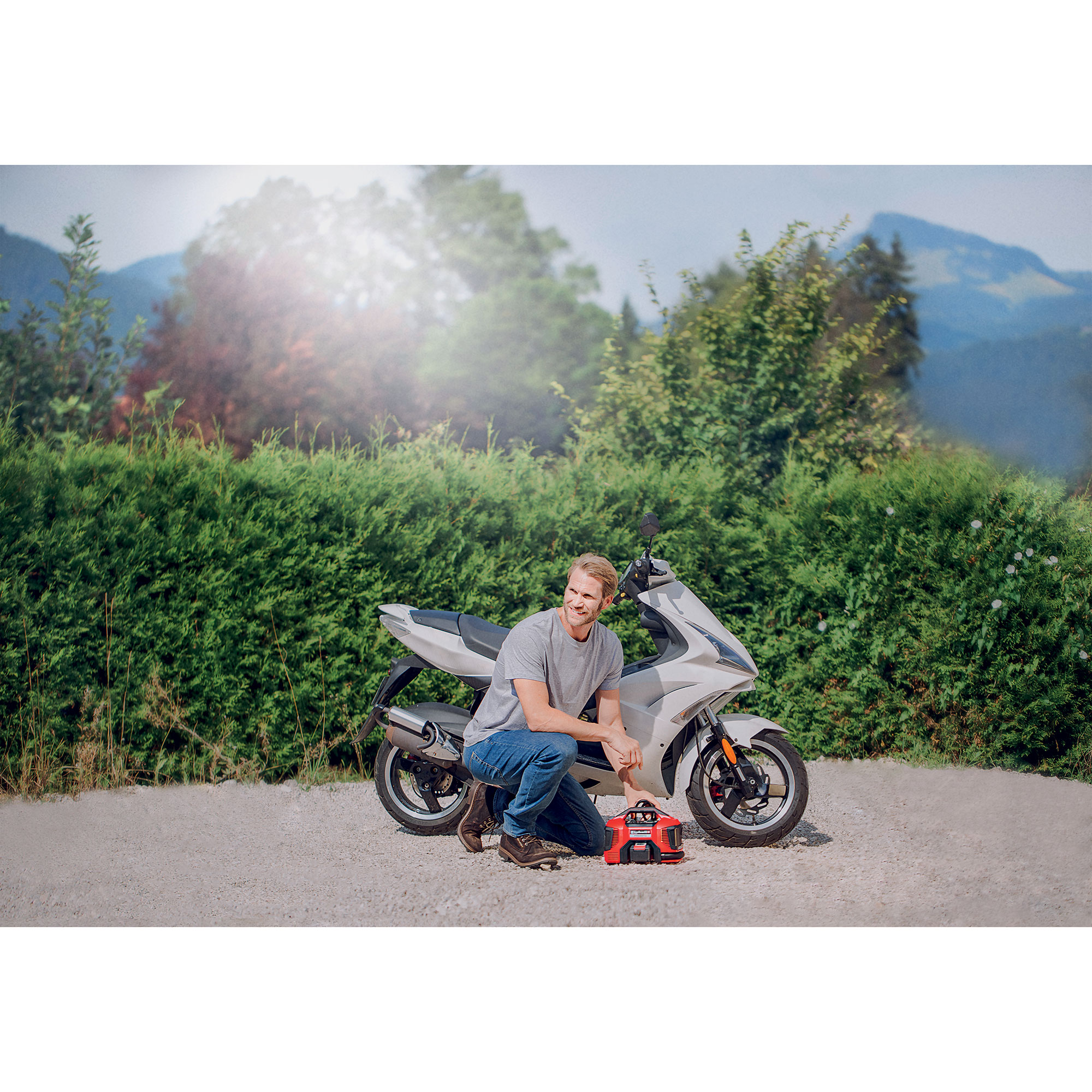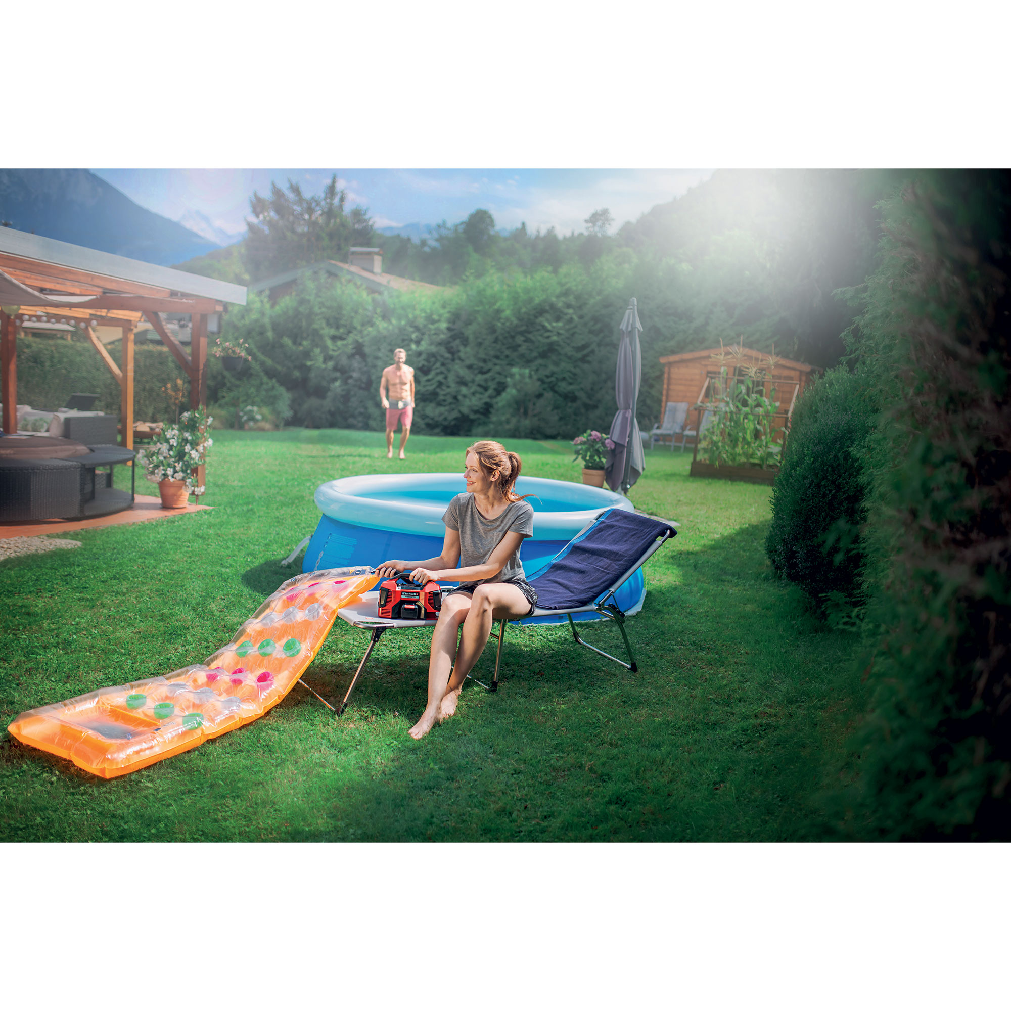 The Einhell dual function corded/cordless inflator/deflator 4020463 is a multifunctional compressor with high-pressure and low-pressure pumps and the option of low-pressure suction. The practical hybrid inflator/deflator can be operated using either a AC power cable or a high-performance 18V battery from the Power X-Change series. The 4020463, featuring a high-pressure pump for pumping air into car and bicycle tires is not only a perfect addition for the garage, it is also ideal for use out on the road as well.For sport, too, the inflator/deflator is also a practical helper for inflating sports balls right where the action is or giving tires a final check before a big bike tour. The high-pressure pump has a maximum operating pressure of 160 PSI and can be manually preset by the user. The auto shutoff function ensures that the inflator/deflator stops when the adjusted pressure is reached. The low-pressure pump enables air mattresses or rubber dinghies to be inflated in next to no time, and the low-pressure suction function helps to make quick work of deflating. Changing between the high-pressure and low-pressure functions is selected by a push button. A 3-piece inflation kit with adapters for car and bicycle tires, for footballs and basketballs and for air matresses and rubber dinghies is also included. The cables and hoses for the hybrid compressor are kept directly on the tool itself, so that they can neither get in the way or get lost. There is also a compartment on the housing for the 3-piece inflation kit. The inflator/deflator has a digital display with a pressure indicator, and the manual controls are user-friendly. The compact and light inflator/deflator can be stowed away easily and, thanks to a rechargeable battery and practical carry handle, can also be taken along in the car. The advantages of a cordless tool are obvious: With the new generation of powerful and long-lasting batteries from Einhell, the dual function corded/cordless inflator/deflator offers the convenience of mobile use as well. Battery and Charger sold separately.
