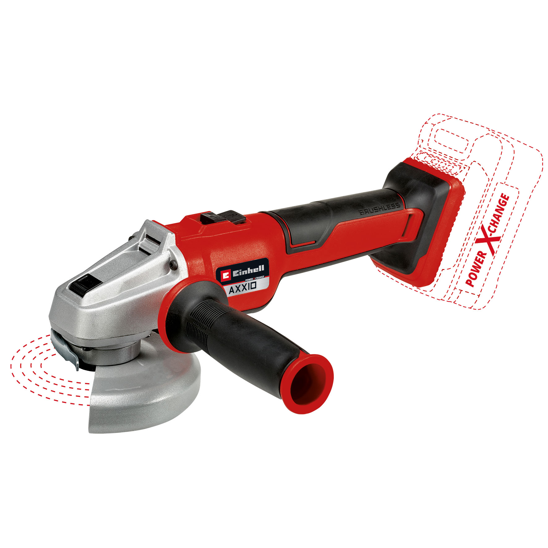 The Einhell 4-1/2" cordless angle grinder 4331147 is a reliable helper for jobs in the workshed, home and garage. Powerful, cordless and easy to work with - these were the qualities that featured high in the list of design criteria. The angle grinder is part of the Power X-Change family of products, where the rechargeable battery can be used in all of the devices in the system series. A 2.5 Ah battery and higher-performance series batteries deliver optimum results. The device is powered by the Einhell PurePOWER brushless motor. This brushless motor offers more power and a longer running time than conventional carbon brush motors. After registering online, the brushless motor comes with a 10-year warranty. The soft start function and restart protection make it safer to use. Meanwhile, comfortable working is ensured via the slim design with its ergonomic softgrip and additional handle. The separation of motor and gearing provides for smooth operation, while the quick-adjust safety guard enables flexible working. For flexibility the additional handle can be fitted in two positions. The quick-fix nut eliminates the need for a face spanner to change the cutting wheel: Changeovers are quick and tool-free. The cordless angle grinder is equipped with overload protection, and the robust aluminum gearing housing is designed for long working life. This product comes without a battery or charger.