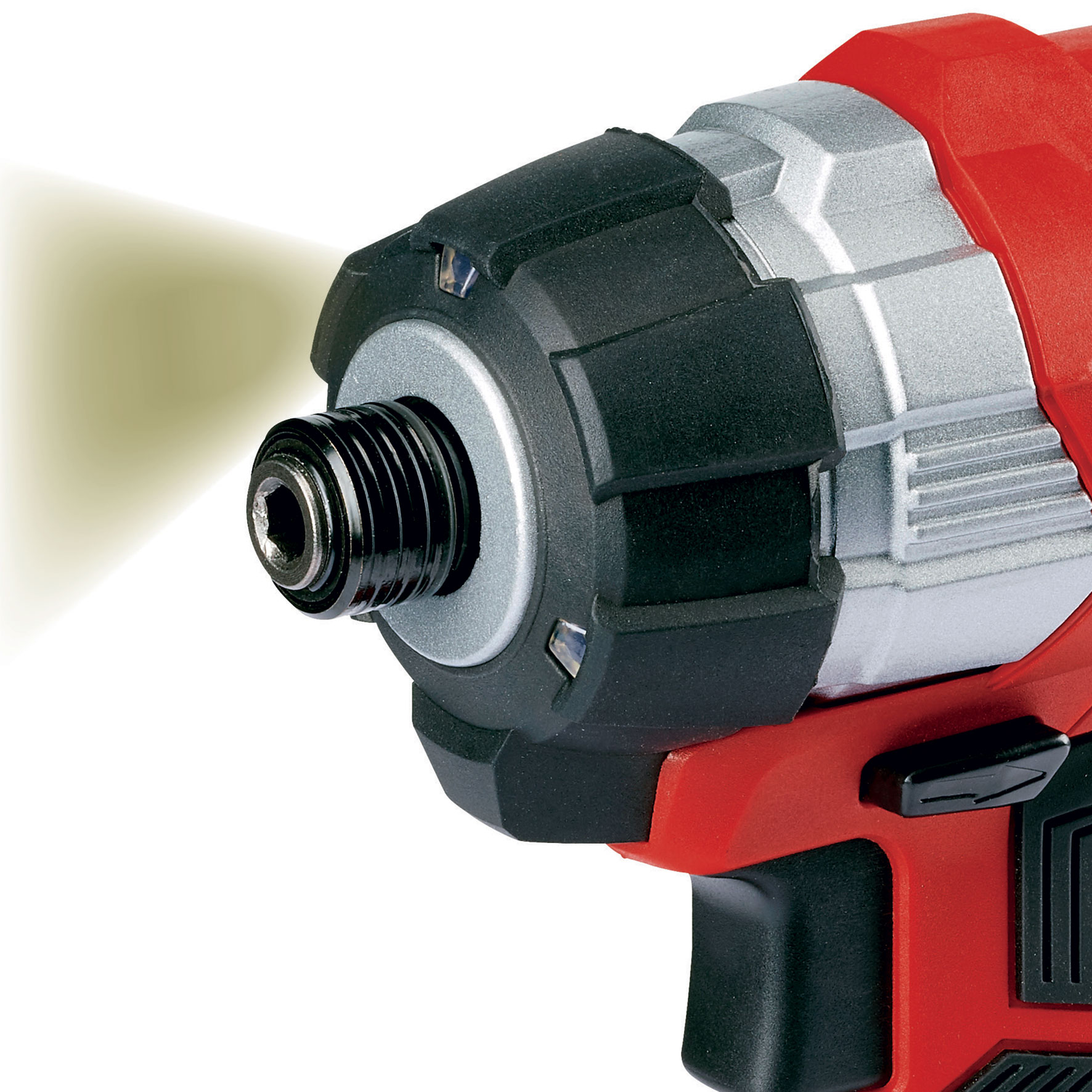 The Einhell 1/4" cordless impact driver 4510045 is a high-power member of the Einhell Power X-Change family featuring all the advantages and range of applications offered by the sophisticated Lithium-Ion technology. All the batteries and chargers from the line can be used with this impact driver. The brushless motor also delivers more power and runs longer than a conventional carbon brush motor. With the brushless cordless impact driver there is no wear from mechanical abrasion. Tightening large and long screws is an effortless undertaking with the impact driver from Einhell. The impact driver comes with a 1/4" hex. bit mount. The finely adjustable electronic speed control (0 - 2,900 RPM) can be precisely adjusted to your requirements for the material you wish to work on, so that neither the material nor the impact driver are overstrained. For soft and delicate materials in particular, it allows work to be carried out with sensitive operation. Thanks to its short, light-weight design it reduces body stress and fatigue, and the ergonomic softgrip surfaces provide a comfortable and firm hold. This product comes without a battery or charger. Batteries and chargers for the Power X-Change range of products are available separately.