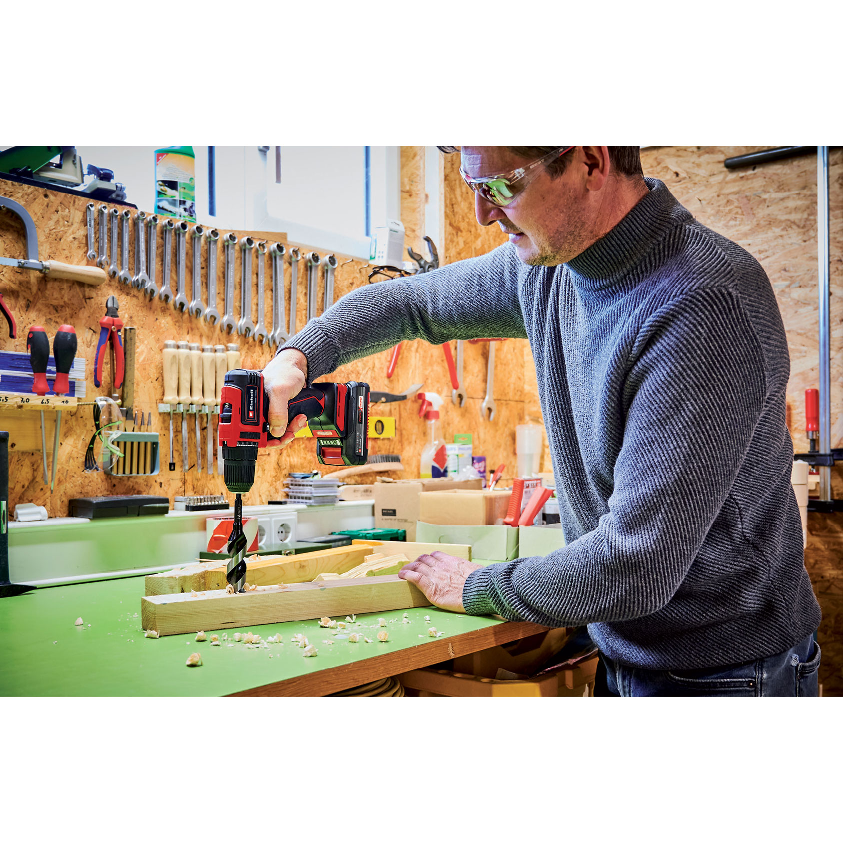 The Einhell 3/8" cordless drill driver kit 4514351 (TE-CD 18/40 Li BL Kit) is ideal for powerful drilling and fast screwdriving delivers maximum torque of 354 in/lbs (40 Nm) and a robust 2-speed gearing. Thanks to the state-of-the-art rechargeable battery technology of the Power X-Change series, the cordless drill driver kit makes easy work of light drilling jobs such as work on wood. The drill driver is powered by the Einhell PurePOWER brushless motor. This brushless motor offers more power and a longer running time than conventional carbon brush motors. After registering online, the brushless motor comes with a 10-year warranty. The small, light cordless drill driver is easy to work with, its easy handling ensuring that you can work without tiring and, thanks to its ergonomic design and Softgrip, the drill driver also provides a firm, secure grip. For all its power, electronic speed control ensures that the tool can still be adjusted to the particular material & application. The cordless drill driver is equipped with a high-quality, single-sleeve 3/8" keyless chuck and LED lighting for optimum operation in dark areas. Batteries with the high-grade Lithium-Ion cells can be used for all members of the Power X-Change family. The product is supplied in a practical carry case with two 2.0 Ah Power X-Change rechargeable batteries and a high-speed charger.