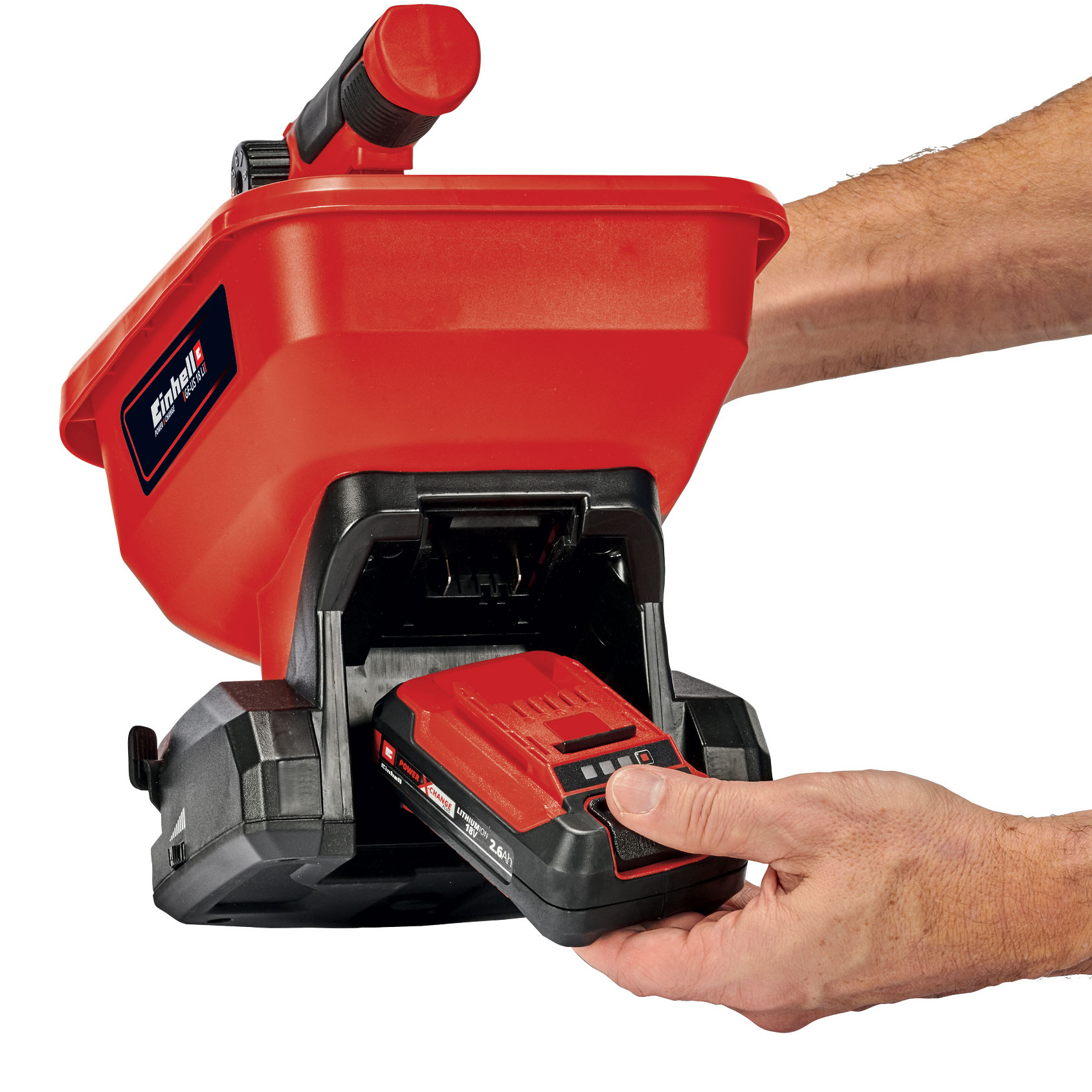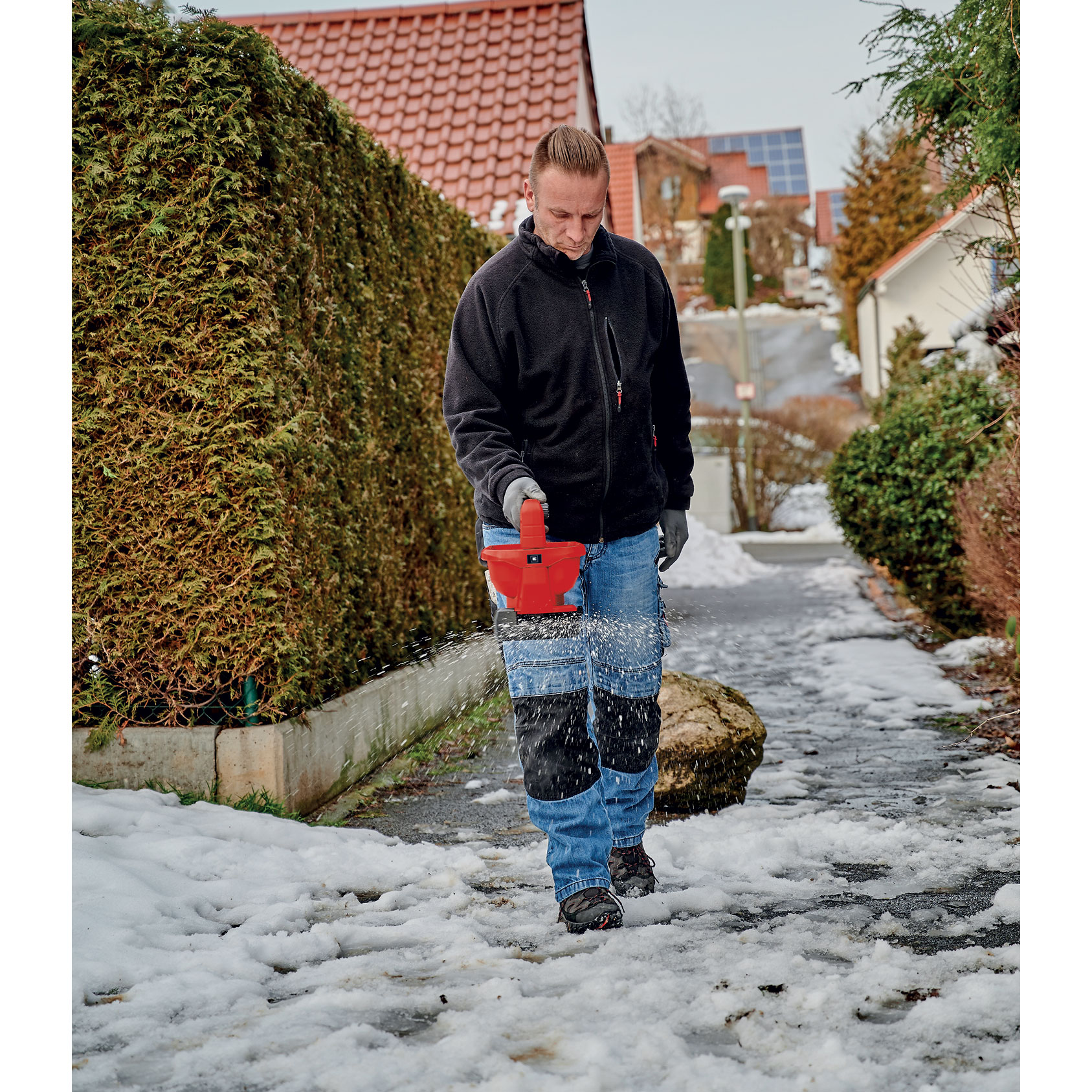 The Einhell universal spreader 3415411 (GE-US 18 Li) makes many jobs in your garden or outdoor spaces a lot easier. Whether for fertilizing, sowing seeds or spreading de-icing salt in winter. As a member of the Power X-Change family, the spreader is powered with an 18V battery, which can be used in all Einhell devices. The 6-level electronic speed control and flow rate adjustment with 8 steps delivers perfect spreading performance. The container has a capacity of 1 Gallon. The spreading width is individually adjustable and can be set to a maximum of 16.4 feet. The softgrip handle makes working ergonomic. The universal spreader can be used to spread fertilizer, lawn seeds or de-icing salt efficiently and easily. This means that this handy helper can be used all year round! The product is supplied without batteries or a charger. The tool does not include a battery or a charger. These accessories are available separately.