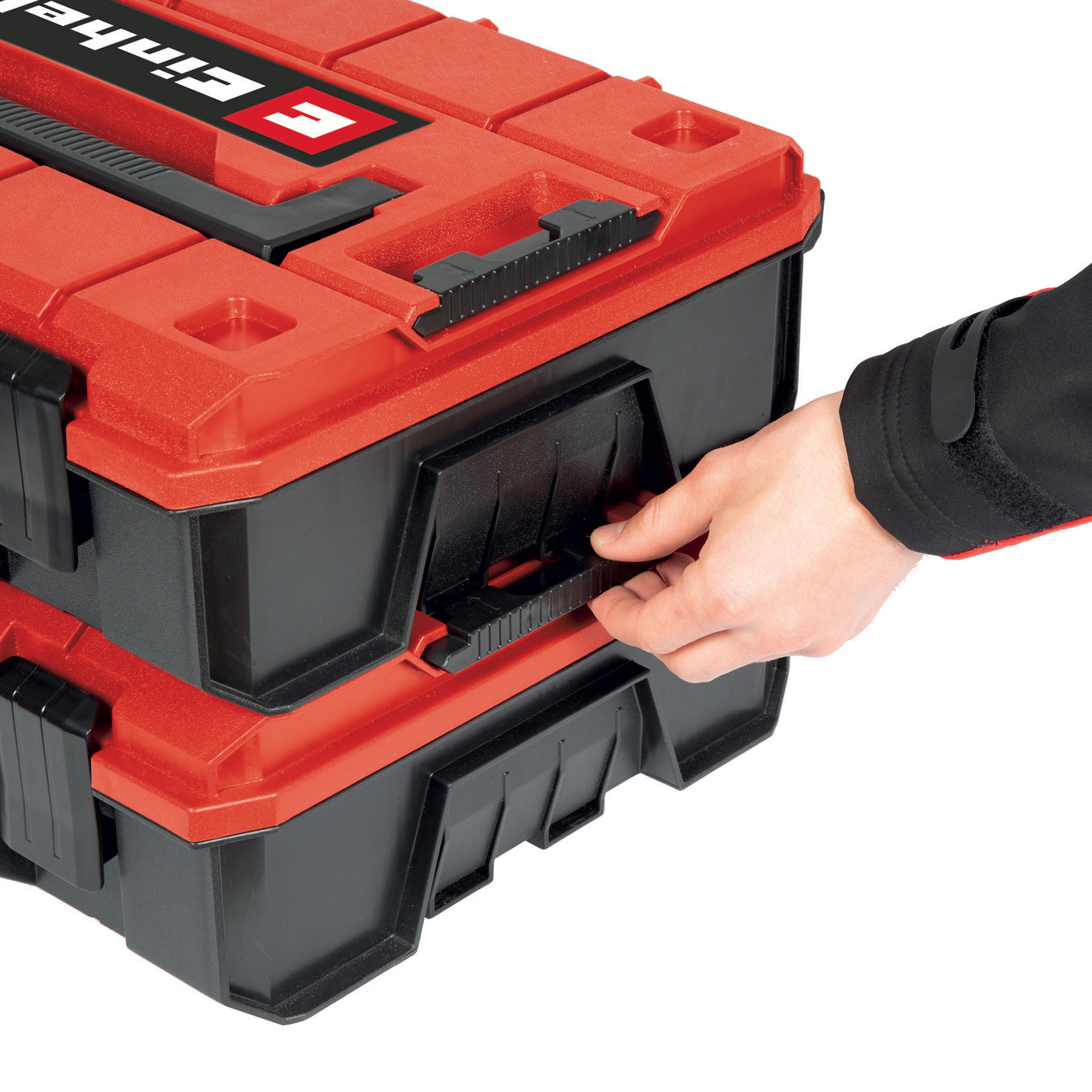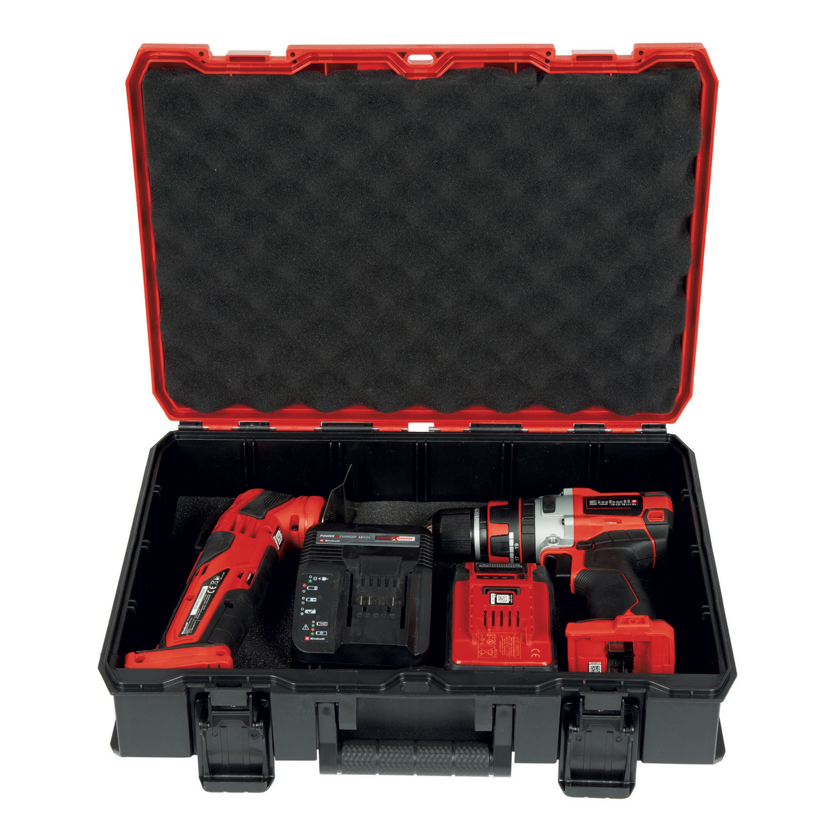 The Einhell E-Case S-F small tool case 4540022 ensures easy storage and convenient transport. The system case is ideal for storing and transporting tools and accessories. With internal dimensions of 16-3/4″ x 11″ x 3-3/4″ and a maximum loading weight of 55 Ibs, the high-quality system case guarantees maximum flexibility and can hold a variation of devices including attachments and accessories such as screws or drills. Two foam inserts ensure that the equipment to be stored or transported is not scratched. A practical locking system for the connection of stacked cases ensures systematic and safe order during storage, simple transport of stacked cases and, thanks to the sophisticated design, the cases can also be opened when stacked. The case is made of polypropylene and is therefore not only splash-proof due to the smart design, but also heat-resistant and impact-resistant thanks to the high-quality material. Two foldable and ergonomic handles make the case comfortable to carry. The case can be equipped with padlocks to prevent theft.