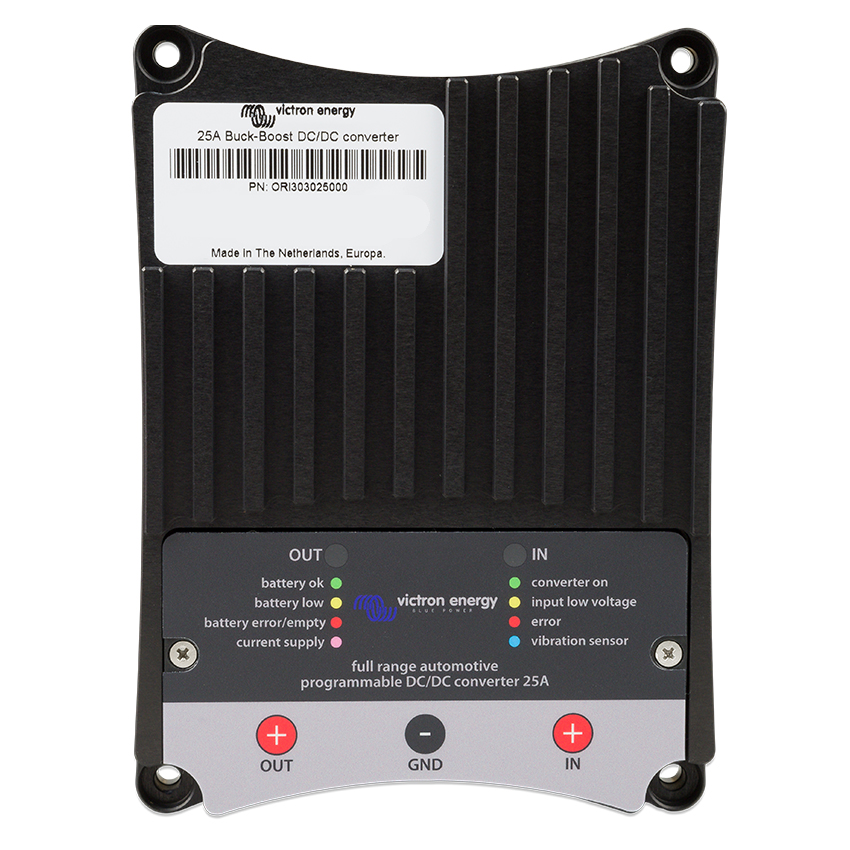 The Buck-Boost DC-DC Converter is a DC-DC converter for charging a 12/24V service battery in vehicles with an intelligent dynamo. Since, when the engine is running, these dynamos (powered by the on-board electronics of Euro 5 and 6 engines) do not always emit the correct charging current, a DC-DC converter is essential for charging the service battery properly.