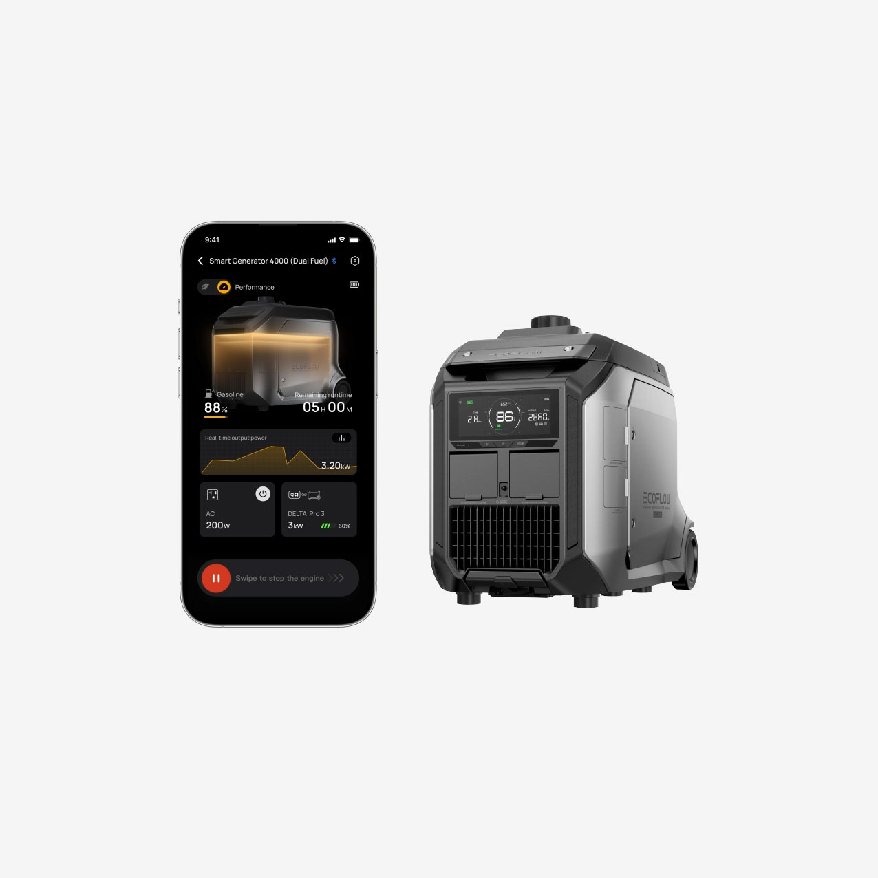 3200W with Gasoline, 2900W with LPG (4000W Peak Output with X-Boost Tech)