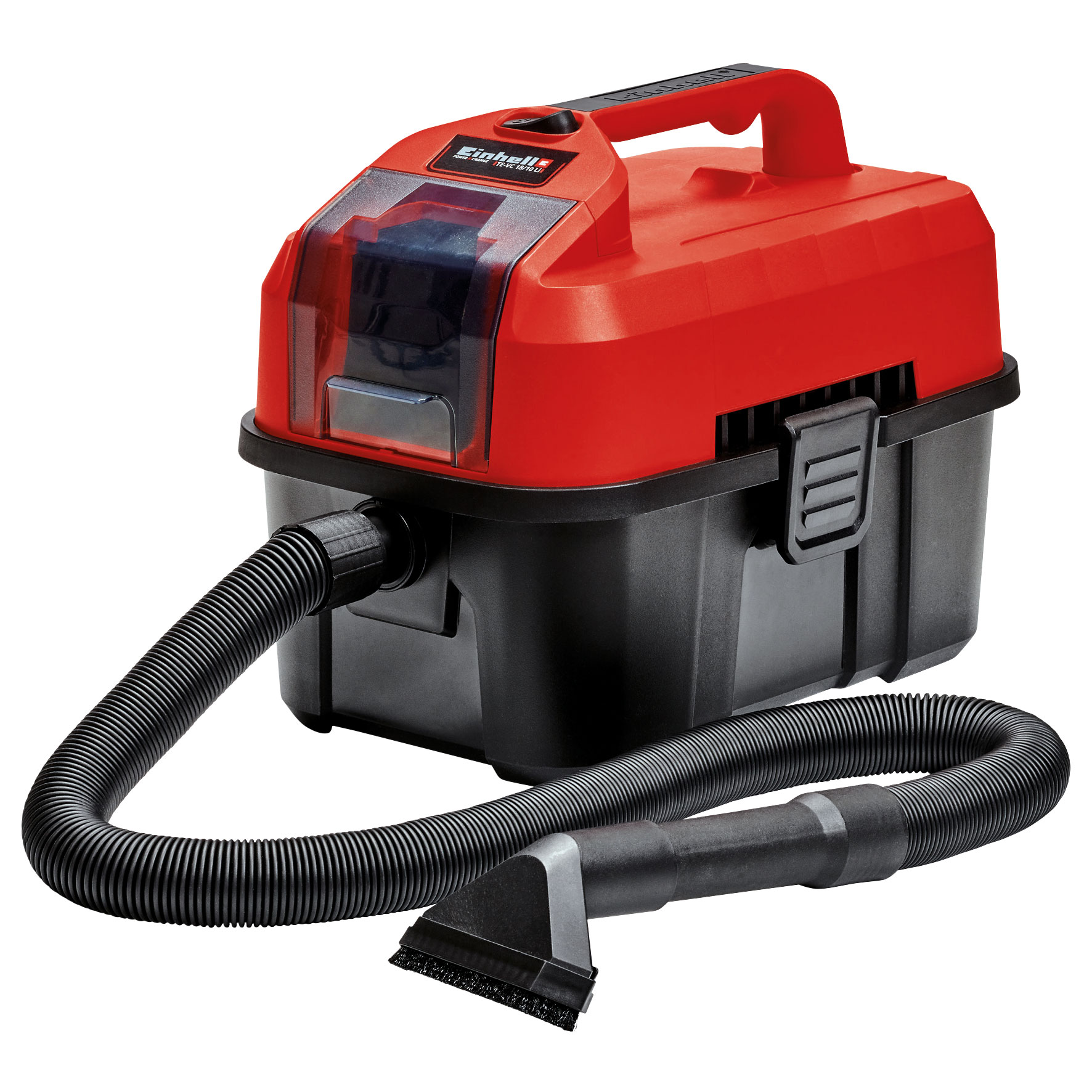 The Einhell 2.6 gallon (10L) cordless wet/dry vacuum 2347165 gets dust, dirt and even liquids cleared up in the home, workshop, basement and garage with freedom to maneuver and no power cord. This multifunctional, multipurpose wet/dry vacuum is part of the Power X-Change family. All the rechargeable batteries from the system series are interchangeable – for every PXC device. The collecting container has a volume of 2.6 Gallon (10L) and therefore has enough capacity for prolonged jobs as well. For easy transport and user-friendly operation, it is ergonomically designed and has a carry handle. The wet/dry vacuum is highly versatile for use on tiles, carpets or other floor surfaces, to do either wet or dry vacuuming - both are possible. The blow connection is for blow-cleaning hard-to-reach areas. The included accessories can be conveniently stowed away directly on the equipment. The container has quick-release fasteners for emptying in a flash. For comfortable working with low noise the motor is quiet at 72 dB. The intelligent position of the On/Off switch enables convenient one-hand operation. The product comes complete with an extendible hose with a total length of 6.6 ft. (2 m), a 2-in-1 crevice/brush nozzle and a 2-in-1 upholstery/universal nozzle, a foam filter for wet cleaning and a paper dust bag. Battery and charger sold separately.