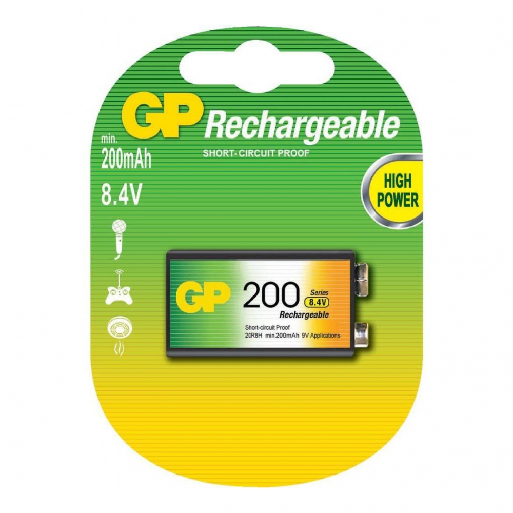 GP's Ni-MH rechargeable batteries are especially designed to meet the most stringent needs of today's high drain applications such as digital cameras. Up to 1000 discharge / recharge cycles. Features: -8.4V 200mAh Ni-Mh -Card of 1
