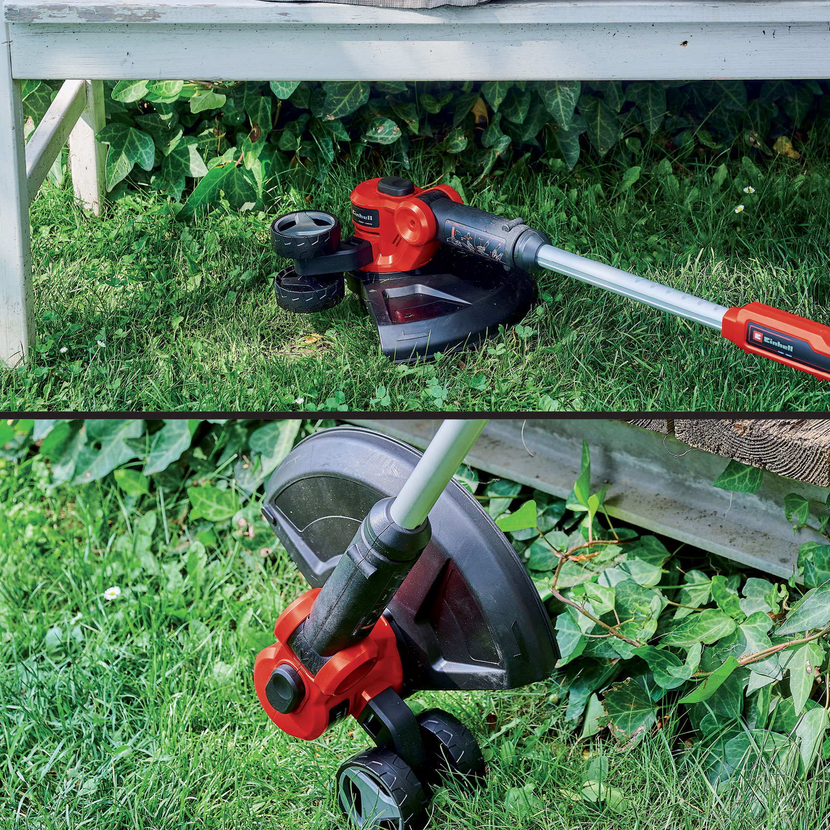 - Tête de moteur pivote 90° pour surfaces verticales et bords de pelouse
