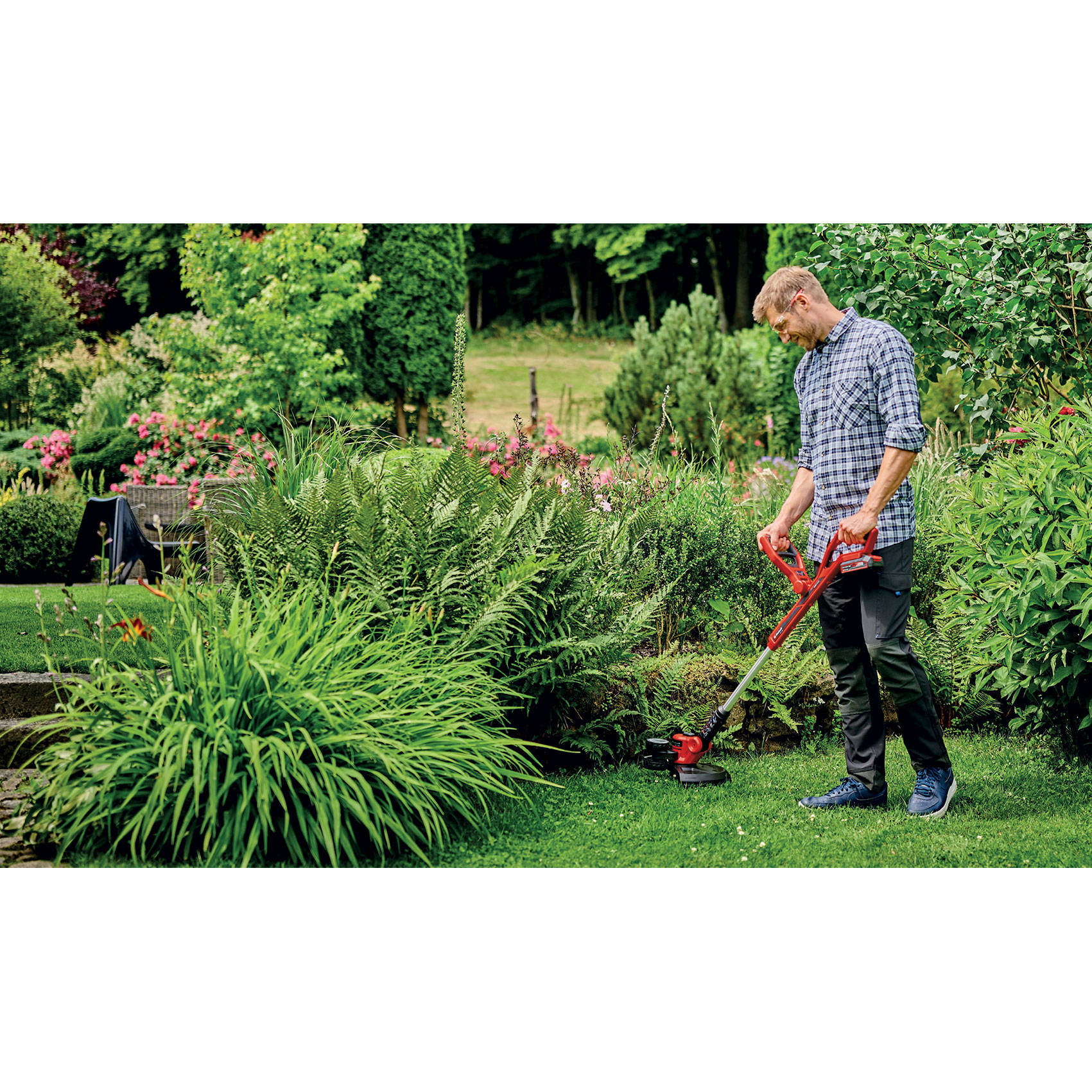 Coupe-bordure télescopique sans fil GE-CT 18/30 Li-Solo Einhell garantit un entretien parfait du gazon. Qu'il s'agisse de plate-bandes, de surfaces planes, de coins ou de bordures : cela ne pose aucun problème à cet outil sans fil. Pour cela, le manche télescopique, qui s'adapte rapidement et facilement, est une aide précieuse. La poignée auxiliaire réglable assure une manipulation agréable, et la surface Softgrip un confort parfait. Le bloc moteur pivote à 90° pour des coupes à la verticale, la roue de guidage intégrée assurant une coupe précise des bordures. Il s'incline en outre sur 3 positions pour une utilisation flexible sous les buissons ou autres obstacles. Le dispositif d'écartement protège les plantes et les arbustes de tout dommage. L'outil est vendu avec une bobine de fil 16.4 pi. à avance à choc pour un rechargement très pratique du fil en fonction du besoin. Le coupe-bordures fonctionne avec une batterie 18V de la gamme Power X-Change. Les batteries de cette gamme sont interchangeables. Vendu sans batterie ni chargeur, ils sont disponibles séparément.