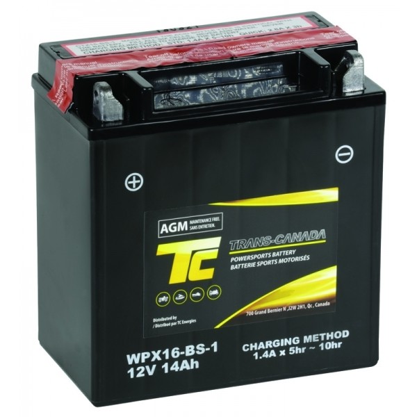 WPX16-BS-1 Batterie de sports motorisés AGM 12V 14Ah 230CCA (bouteille d'acide incluse)