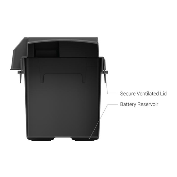 Cette boîte de batterie durable conserve ses propriétés d'impact jusqu'à-20F et est également résistante aux UV, au pétrole et a l’essence. Ce boîtier a couvercle enclenchable a onglets de verrouillage fixe le couvercle solidement sur le boîtier de la batterie.