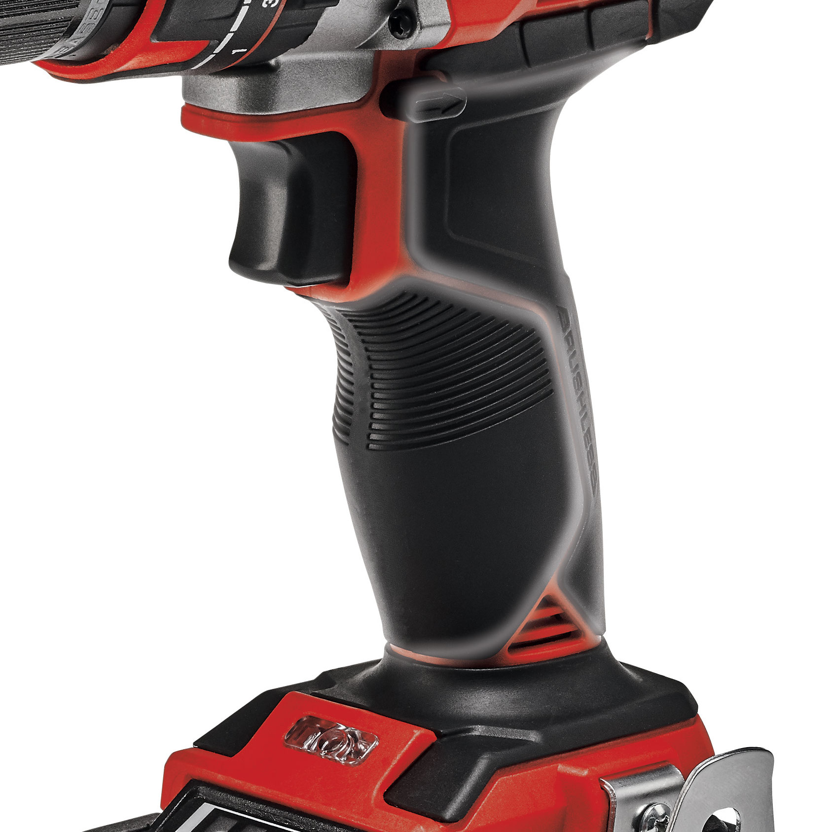 La perceuse à percussion sans fil 4514360 d'Einhell est un outil polyvalent qui permet aux bricoleurs et aux artisans de réaliser à la perfection trois opérations importantes, puisqu’elle réunit dans un seul et même outil très pratique les fonctions de vissage, de perçage et de perçage à percussion. La perceuse à percussion est compatible avec toutes les batteries aux Lithium-Ion très performantes de la gamme Power X-Change. Vendu avec 2 batteries aux Lithium-Ion 2,0 Ah Power X-Change, l’outil est toujours prêt à l’emploi, sans aucun risque d’autodécharge. Un chargeur rapide est également fourni. Avec son moteur sans balais, la perceuse à percussion offre davantage de puissance et une durée de fonctionnement plus longue, sans risque d’usure mécanique. Grâce à la fonction de perçage à percussion intégrée pour une utilisation universelle, et à l’engrenage à 2 vitesses qui assure un perçage et un vissage puissants, la perceuse à percussion pénètre même dans des matériaux plus durs comme le béton léger, la pierre ou la brique. Le contrôle de vitesse électronique garantit l’adaptation aux matériaux et aux utilisations, et permet à l’outil de fonctionner si nécessaire à des régimes inférieurs pour des opérations de vissage dans des matériaux moins durs. L’éclairage DEL permet un travail optimal dans les environnements sombres. Grâce à sa conception ergonomique et à son revêtement souple, la perceuse à percussion offre une maniabilité optimale et une prise en main ferme, même dans les conditions d’utilisation difficiles. L'outil est vendu dans un coffre pratique.