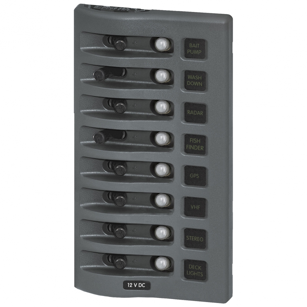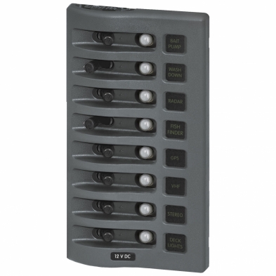 BS4378 Panneau de disjoncteur étanche WeatherDeck 12V CC - gris 8 positions