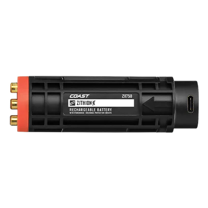 Gardez votre lumière prête. Compatible avec les lampes de poche GX20, HP8R et A25R, la batterie lithium-ion rechargeable ZX750 ZITHION-X™ est dotée d'un port USB-C intégré pour une charge facile à l'intérieur ou à l'extérieur de la lampe. Un indicateur de charge de la batterie clignote en rouge pendant la charge et brille en vert continu lorsqu'elle est entièrement chargée. Les circuits de protection contre la surcharge/décharge rendent la mise sous tension aussi simple et sûre que possible. La garantie d'un an de COAST protège la batterie contre les défauts de matériaux et de fabrication.