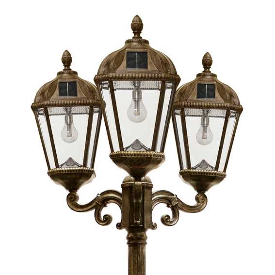 Le lampadaire solaire Gama Sonic Royal Bulb à trois lampes avec ampoule solaire GS à DEL GS-98B-T brevetée ajoutera une touche de noblesse à n’importe quel aménagement paysager grâce à son design rappelant les réverbères de la Nouvelle-Orléans.