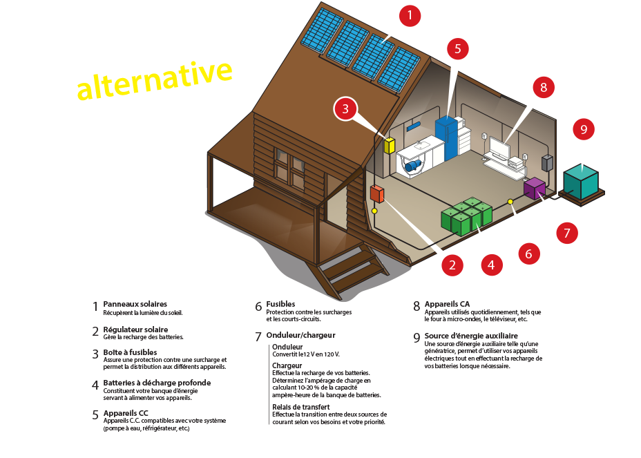 L’énergie solaire vous offre la flexibilité de bâtir votre système en 12, 24 ou 48 Volts. La taille des installations et le voltage peuvent également être augmentés pour s'adapter à vos besoins et votre environnement. Discutez de toutes vos options disponibles lors de votre rencontre préparatoire avec un conseiller Batteries Expert.