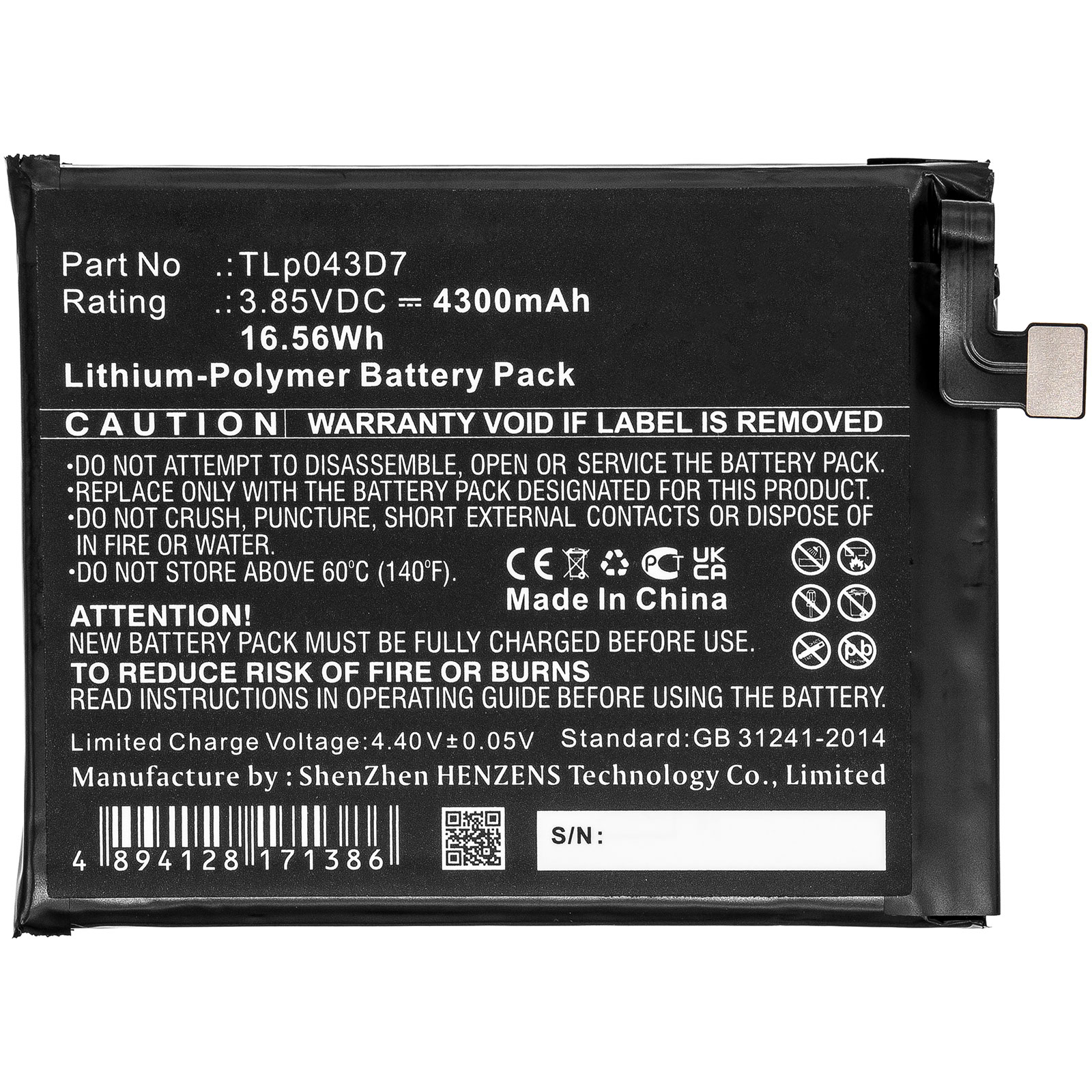 CE-ALOT5061 Pile de remplacement pour téléphone mobile Alcatel TLP043D7; 3X, 5X, OT-5061U