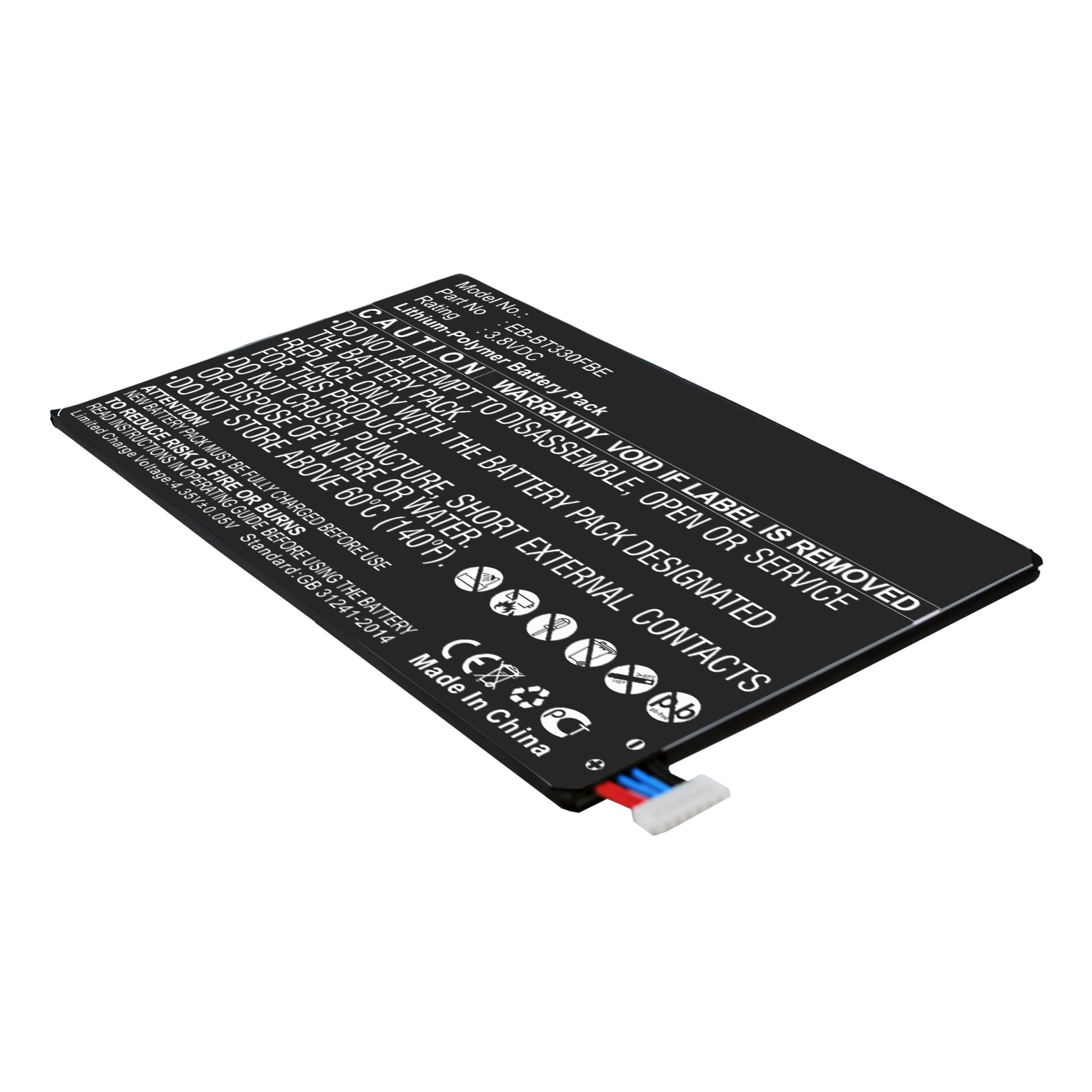 TB-SGT332 Pile de remplacement pour tablette Samsung EB-BT330FBE; SM-T330, Tab 4 8.0